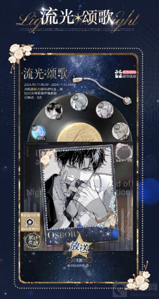 就在今日(10.15)光与夜之恋,璀璨巡礼限时活动预告内容公布。活动期间将开启[流光颂歌]玩法,消耗道具[溯彩光碟]或[溯彩光碟・限时]转动转盘,可获得[玎玲小夜曲]系列纪念灵犀、小熊星座、灵犀培养材料等奖励。我们一起来看看具体内容吧。