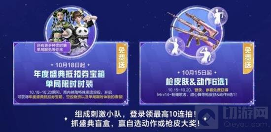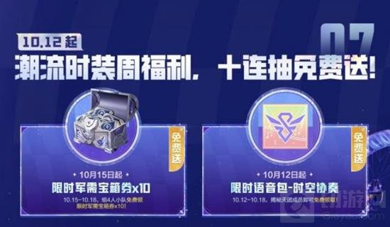 在10月15日至10月18日期间,玩家能通过登录游戏组成四人“刺激小队”来免费领取军需限时十连抽福利。