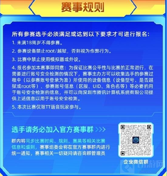 注意:选手请务必加入官方赛事群,群内将同步比赛时间、规则、赛果等相关比赛信息和细则,赛事组委会将在官方赛事群内进行统一通知,赛事相关一切疑问请咨询群管理员。