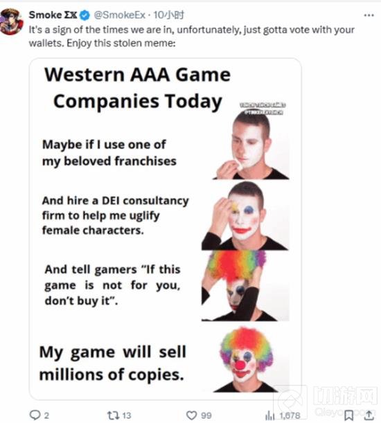 推文随即引发玩家讨论,一些玩家发布了更多的梗图表示自己心里的无奈之情,更多的玩家表示:“看着这些人就不得不呕吐。”