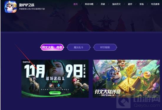 首先我们打开金铲铲的官网,在首页找到双城之战2,点击进去。