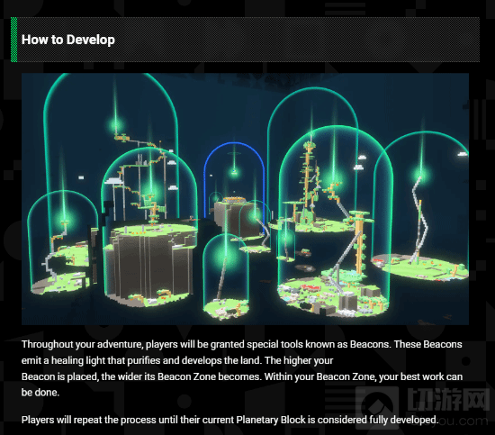 这次测试似乎与一款游戏紧密相关,目标是通过创造力和资源的运用,与其他玩家合作开发一个广阔星球。随着探索的深入,新的土地、敌人和资源将不断出现。游戏中灯塔的作用至关重要,它们发出的治愈之光能够净化和开发土地。玩家需要重复这一过程,直至认为行星区块已完全开发。