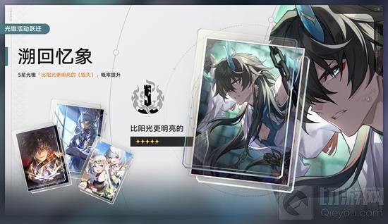 活动期间,限定5星光锥「比阳光更明亮的(毁灭)」,4星光锥「梦的蒙太奇(丰饶)」「谐乐静默之后(智识)」「在蓝天下(毁灭)」跃迁成功概率限时提升。