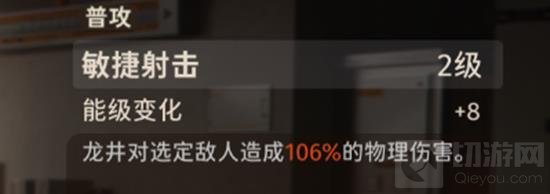 普攻【敏捷射击】:没有特殊效果,但有两段伤害,第二段是普攻的本体攻击。