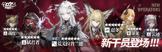 感谢庆典期间,游戏将新增干员【荒芜拉普兰德】、【忍冬】、【弑君者】、【裁度】、【菲莱】以及【云迹】。其中,【荒芜拉普兰德】为限定干员,仅能在限定寻访中获得。