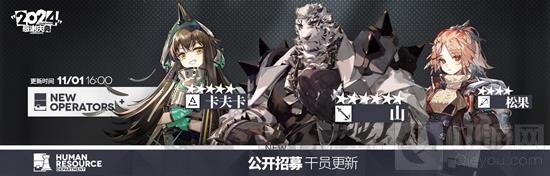 11月01日起,干员【山】、【卡夫卡】、【松果】将加入公开招募,并成为常驻干员。