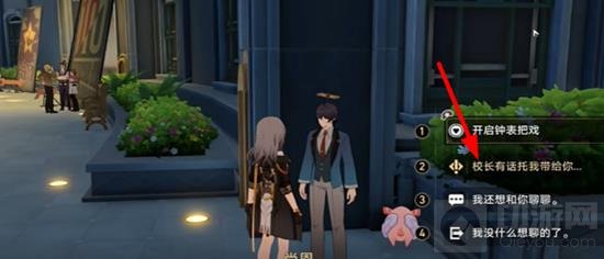 找到尚恩后,下一步就是与他进行对话。尚恩通常会在雕像的目的地拐角处出现,玩家只需要靠近并与之交谈即可。这段对话不仅是触发后续任务的关键步骤,同时也是解锁成就的重要环节。切游小编温馨提示,与尚恩交谈的过程中,我们选择第二个选项“校长有话托我带给你”,以便于后续任务的进行。