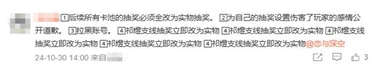 3. 官方的祁煜主线分线PV抽奖还未开奖,玩家要求将该抽奖的奖品类型在开奖前从现金改为实物。
