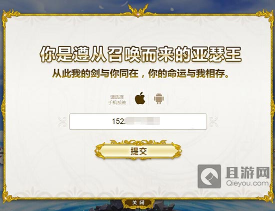 第二步,使用鼠标按住画面中间剑柄处向上移动,此时就会出现预约激活码的界面。