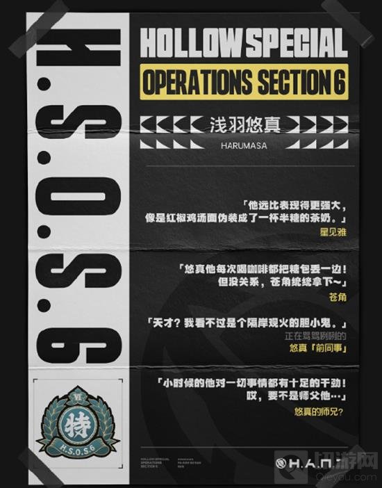 人物介绍:浅羽悠真是游戏《绝区零》对空洞特别行动科第六课的执行官。作为电属性的强攻角色,浅羽悠真在游戏中拥有强大的输出能力,能够对敌人造成大量的电属性伤害。