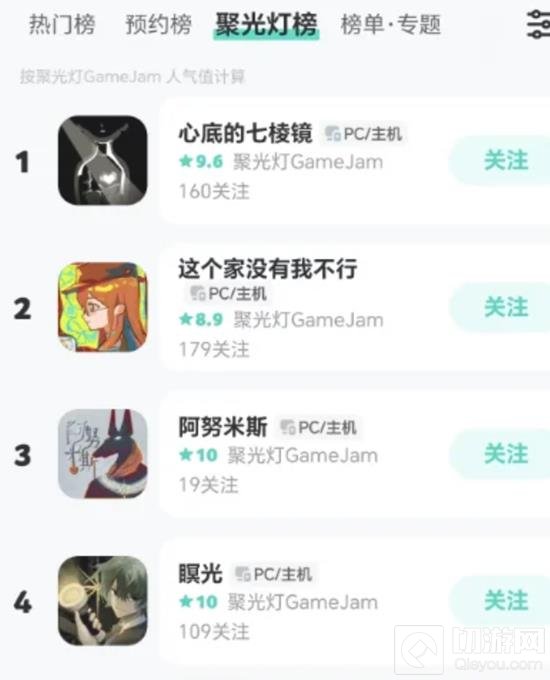 榜单:更新TapTap App至最新版本,查看「聚光灯榜」,根据人气值排列游戏Demo。