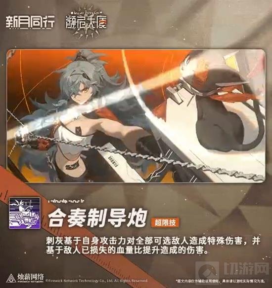 总而言之,刺灰的实战策略更接近于万用,战术技可以灵活地用于应对单目标或者多目标。超限技使得敌人越残血自身伤害越高,也是清杂的强力人选。在伤害输出方面,刺灰是使用特殊伤害进行攻击的角色,因此如果想要辅助她的话,请不要携带红袍这类物理辅助,而特殊(说白了就是法术)辅助和通用辅助都是可以携带的辅助位队友人选。以上就是新月同行刺灰的技能介绍以及实战建议,如果这篇攻略对你有帮助,还请点个收藏关注一下切游网,各位读者的支持就是我们持续更新的最大动力。
