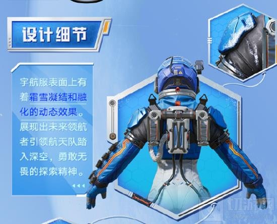 宇航服表面上有着霜雪凝结和融化的动态效果展现出未来领航者引领航天队踏入深空,勇敢无畏的探索精神。