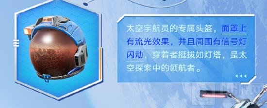 太空宇航员的专属头盔,面罩上有流光效果,并且周围有信号灯闪动,穿着者挺拔如灯塔,是太空探索中的领航者。