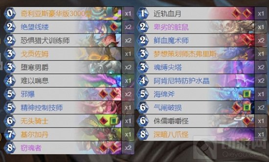 DK:常规的血DK卡组,解卡拉满,对抗海盗瞎有优势。