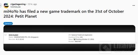 目前,外界对于“Petit Planet”的猜测主要集中在两个方向。一方面,有人认为这可能是米哈游之前公布的游戏《星布谷地》的新英文名称,尽管该游戏之前已经注册了“Astaweave Haven”。由于游戏仍处于研发阶段,更换英文名称并注册新商标是合理的。