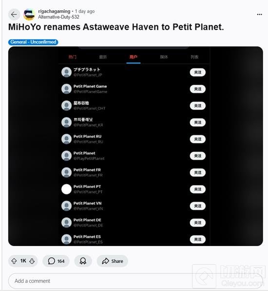近期,中国游戏公司米哈游在海外申请了一个新的商标“Petit Planet”,这个名称由法语“Petit”(意为“小”)和英语“Planet”(意为“星球”)组成,直译为“小小星球”。这一新商标的申请引起了广泛的关注和讨论,尤其是在外网社区。