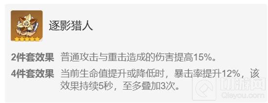逐影猎人四件套:这套圣遗物能够提供高达36%的暴击率,且从第三箭开始可完全覆盖,非常适合依赖重击输出的林尼。