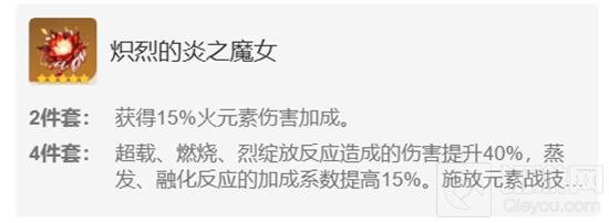 炽烈的炎之魔女两件套:提供火元素伤害加成,适合在没有较好的四件套时作为过渡使用。