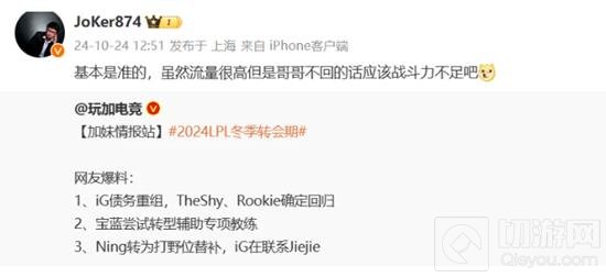 结合多方爆料:IG新股东是虎牙、极氪和氧望体育,同时Theshy和Rookie确定已经回归,下路哥哥还在争取。