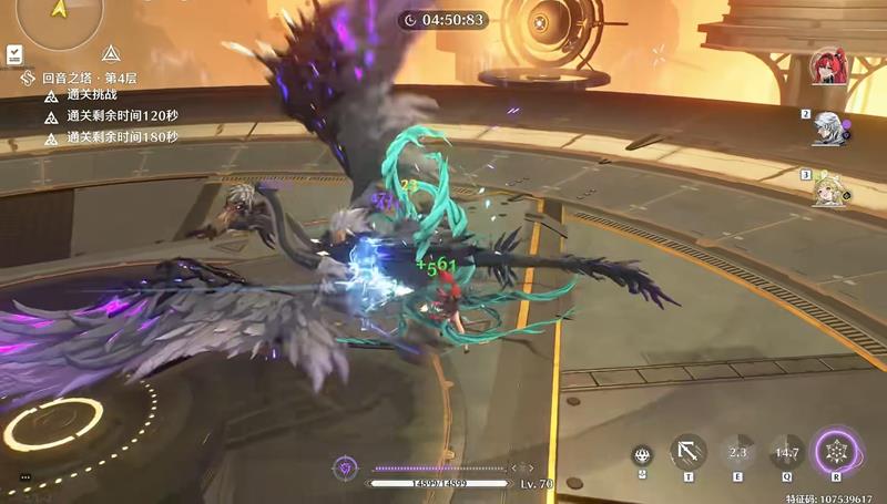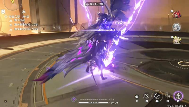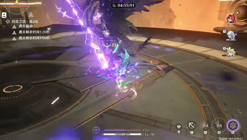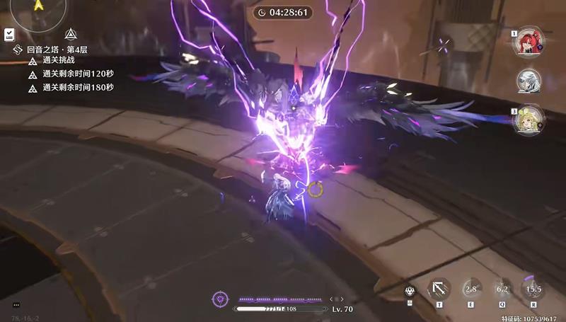吟霖入场后可以发现强化重击能量条仍然没有满,且吟霖强化重击会激活第一段技能的印记,而吟霖的能量条只差这一段技能就能打满。由此得出吟霖这次的进场输出顺序为:e→重击→切人(至此打完全部的七次合轴)