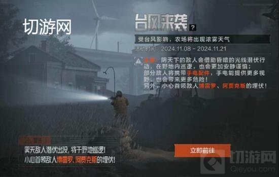 台风导致农场地区乌云密布,电闪雷鸣,能见度降低。和农场封锁区玩法相比,台风来袭模式下的农场不仅可见度降低,游荡者也更狡猾,让行动变得比以往更加危险。