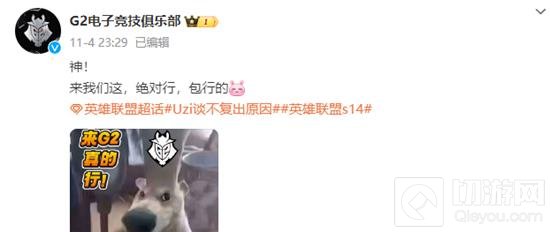 看似整活,小编觉得,如果Uzi流出一点意向,G2都会立刻签下Uzi让他去打首发AD!要知道,这可是神一般的AD!不过小狗现在还是想将精力扑在自己的生活上,并不打算复出。