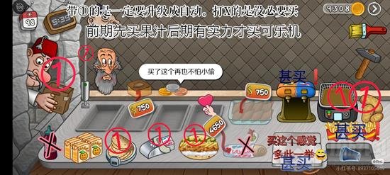 优先升级:烤肉管、卷饼皮、包装机、削土豆等设备应同时升级,根据攒够的钱能升哪个就升哪个。