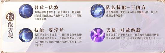 队长技能-玉函方:进入战斗时,使敌方全员的阴属性抗性降低15%。我方全体的最大生命提升15%。