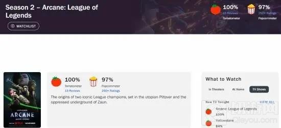 双城之战2是英雄联盟世界观衍生动画剧集,在第一部时就获得了极大的关注与非常好的成绩,如今第二季现已正式开播,腾讯视频和B站同步上线。目前本片在烂番茄的新鲜度为100%满分,观众爆米花指数也高达97%。