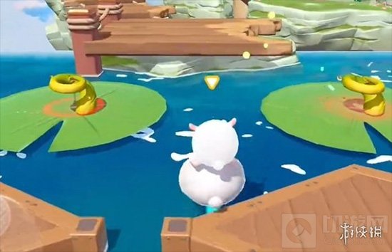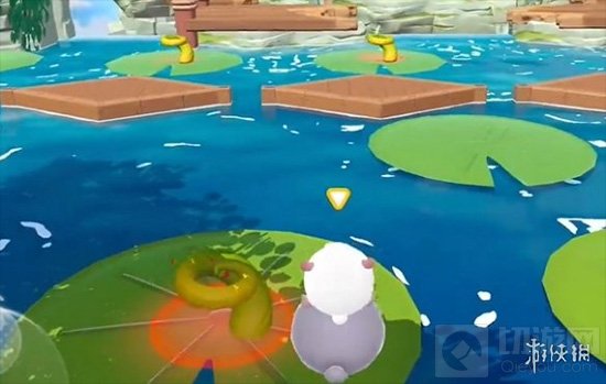 3.斜向跳跃:斜向右走,精准落在荷叶边缘,注意控制跳跃距离。