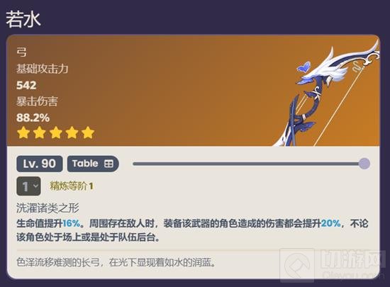 若水的88%暴击伤害过于超模,是给谁都很合适的武器。欧洛伦携带若水的话不仅可以降低圣遗物压力,还可以提升自己20%的伤害加成,输出伤害得到很大的强化。