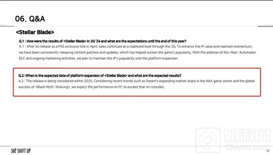 《剑星》是一款由韩国SHIFT UP工作室开发,并由索尼互动娱乐负责发行的动作冒险游戏。根据SHIFT UP的最新财报信息,这款游戏计划在2025年面向PC平台发布。鉴于Steam平台上类似《黑神话:悟空》这样的3A级游戏近期所展现出的强劲市场表现和不断攀升的玩家基数,公司对《剑星》的销量抱有很高的期望。