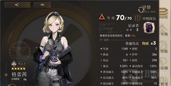 格雷茜:提供迟滞Debuff,具有良好的回能能力,适合作为T0辅助角色的下位替代。