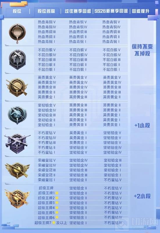 以上就是和平精英ss30赛季段位继承详细介绍段位继承表的全部内容了,更多游戏资讯,攻略内容敬请关注切游网,您的支持是我们努力的动力。