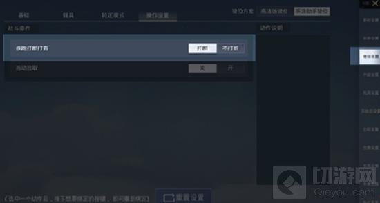 3、新增疾跑打断打药设置功能。点击设置-键位设置-操作设置选择打断/不打断。*推荐使用切换冲刺/永久冲刺的玩家将此项设置为不打断。
