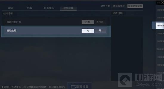 4、新增拖动拾取开关两种模式。点击设置-键位设置-操作设置选择开启/关闭,开启后按住鼠标右键可拖动目标物品至背包或者装备上,鼠标左键按住物品列表拖动可滑动列表。