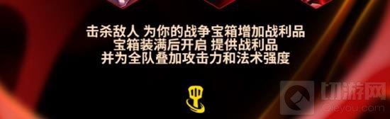 【征服者】们在参与击杀后会提供【征服】层数。获得足够的【征服】层数后,即可打开一个装满战利品的战争宝箱。【征服者】们获得攻击力和法术强度,并且每打开一个战利品宝箱,加成会提升3%。