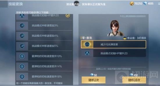 整体来看,零-新生在零的技能基础上增加了两条可洗炼技能,可洗炼出减少闪光弹效果;冲锋枪切枪速度提升;挑战模式初始HP提升;挑战模式中移速增加;霰弹枪切枪速度提升;暴击获得钻石幸运值增加等。