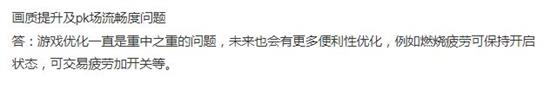 策划回答:游戏优化一直是重点问题,未来也会有更多便利性优化,例如燃烧疲劳可保持开启状态,可交易疲劳加开关等。