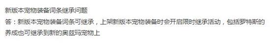策划回答:新版本宠物装备词条可继承,上架新版本宠物装备时会开启限时继承活动,包括罗特斯的养成也可继承到新的奥兹玛宠物上。