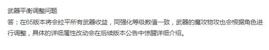 策划回答:在65版本将会拉平所有武器收益,同强化等级数值一致,武器的攻物攻也会根据角色进行调整,具体的详细属性改动会在后续版本公告中进行详细介绍。