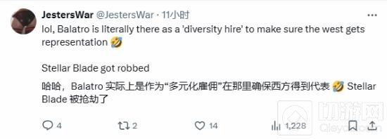 值得注意的是,除了《小丑牌》以外,其他获得年度最佳提名的游戏均来自中国和日本。对此,推主 Pirat_Nation发表评论称:“甚至连游戏奖都知道西方电子游戏产业已经完蛋了。”