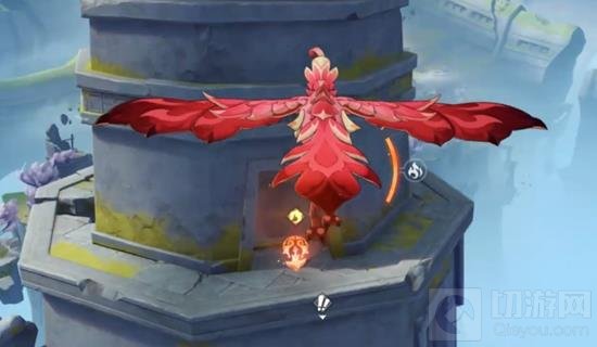 在建筑右侧的石柱顶端,点击进入按钮,便可以暂时魂附绒翼龙。