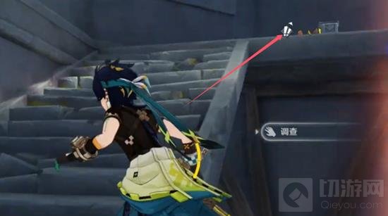 到达塔顶后,沿着平台跳到楼中。你会注意到一个带有感叹号标志的地点,这是触发任务的关键位置。