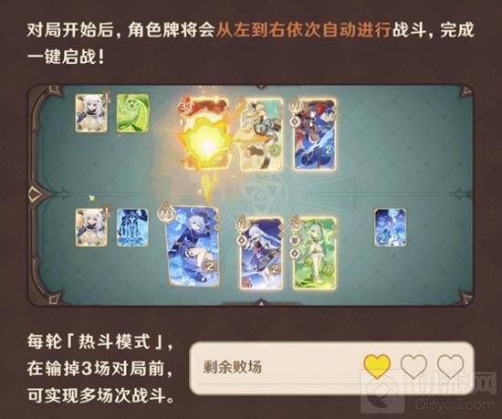 胜负条件:击败对手所有角色即可获胜,输掉3场即结束本次挑战。