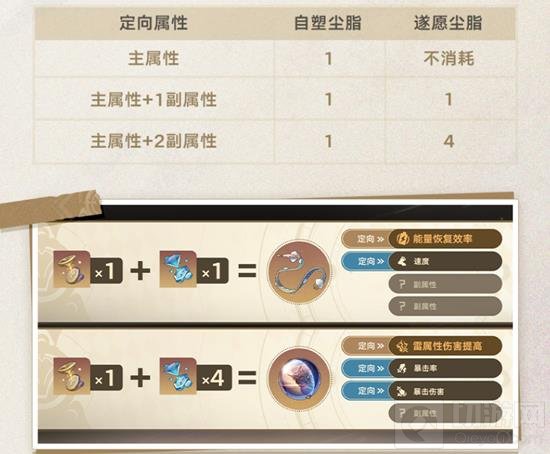 在3.0版本中,除了原有的主属性自定义外,还新增了【遂愿尘脂】用于遗器副属性定向。