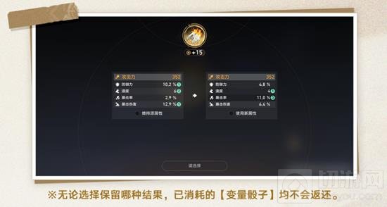 在新版本中,开拓者可以通过消耗1个【变量骰子】对已经强化至15级的5星遗器进行重掷。