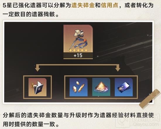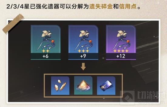 强化后的遗器不再只能作为遗器经验材料消耗,而是可以选择分解为遗失碎金和信用点。