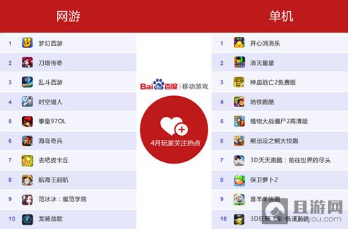报告显示,4月份百度移动游戏平台RPG、卡牌、休闲类手游依然占据着各项数据榜单的主要位置。《全民奇迹》、《梦幻西游》、《刀塔传奇》、《乱斗西游》、《时空猎人》、《海岛奇兵》等多款明星产品均表现出了极强的战斗力,备受玩家青睐。可见尽管目前市场上手游数量剧增,玩家热点切换较为频繁,然而,只要游戏具备优质内容并能在后期做好持续的优化改进、强势平台精细化运营的加持,就能保持游戏对玩家的持续吸引,从而保障收入的持续飘红。